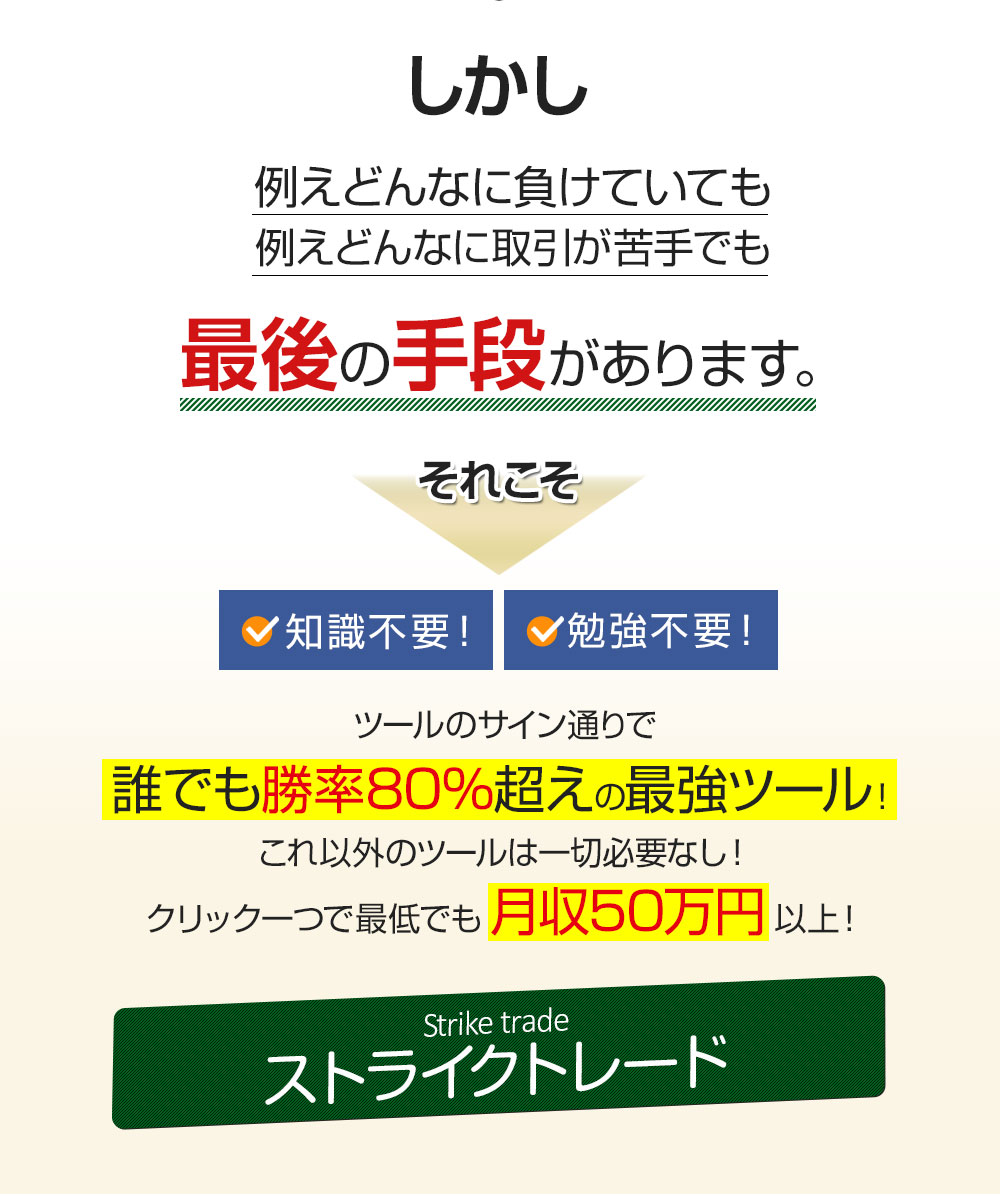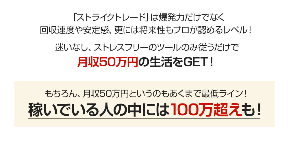 一ヶ月以内で「ストライクトレード」の購入代を手にしています。